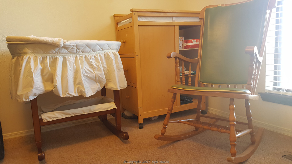 The excitement is building for me. The baby’s room actually has stuff in it now and the little outfits, the cradle, the stroller, the package of tiny diapers all make it seem more real. Yeah, I find myself thinking that these itty-bitty diapers are cute and then wonder what has happened to me. It feels almost nostalgic in a sense, but that word seems to refer to the past… this is more like pre-notstalgia with a strong dose of anticipation.