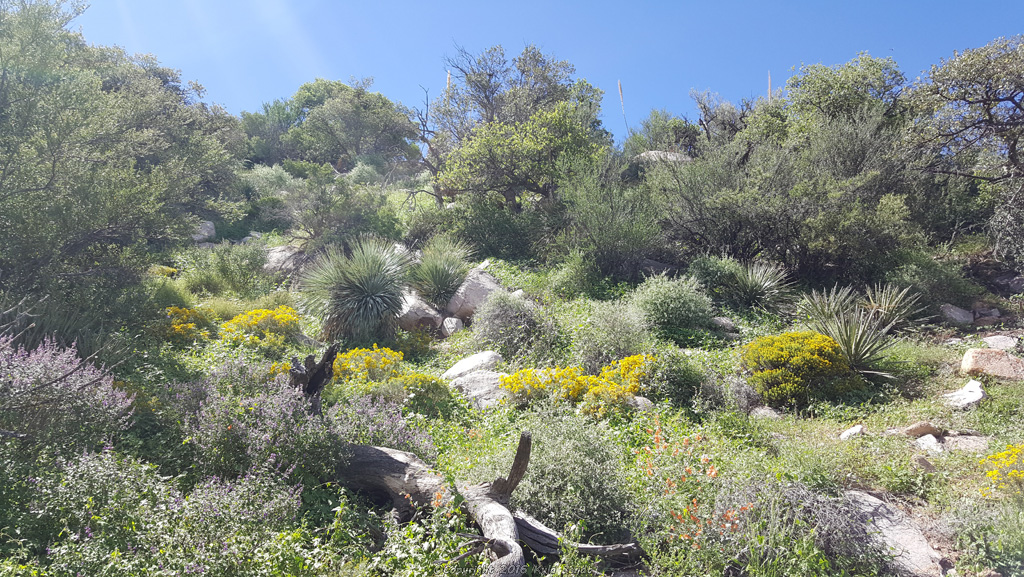 organ-mountains-2The Organ mountains are rocky and jagged.  They look cool even from a distance since they jut up seemingly out of nowhere.  The area is supposed to provide good rock climbing although some of the peaks look nearly impossible to climb.  ‘Rugged’ seems to be a good word to describe them.  The vegetation stuck out as being different from any other area I’ve been.  It’s hard to put into words exactly how it was different, but it was.   The area was surprisingly green.  I have no clue if this is normal or if we just hit it after an unusual amount of rain.  There were also a ton of wildflowers blooming.  In some places, the flowery scent seemed almost overwhelming.