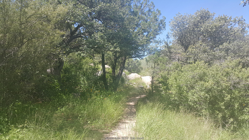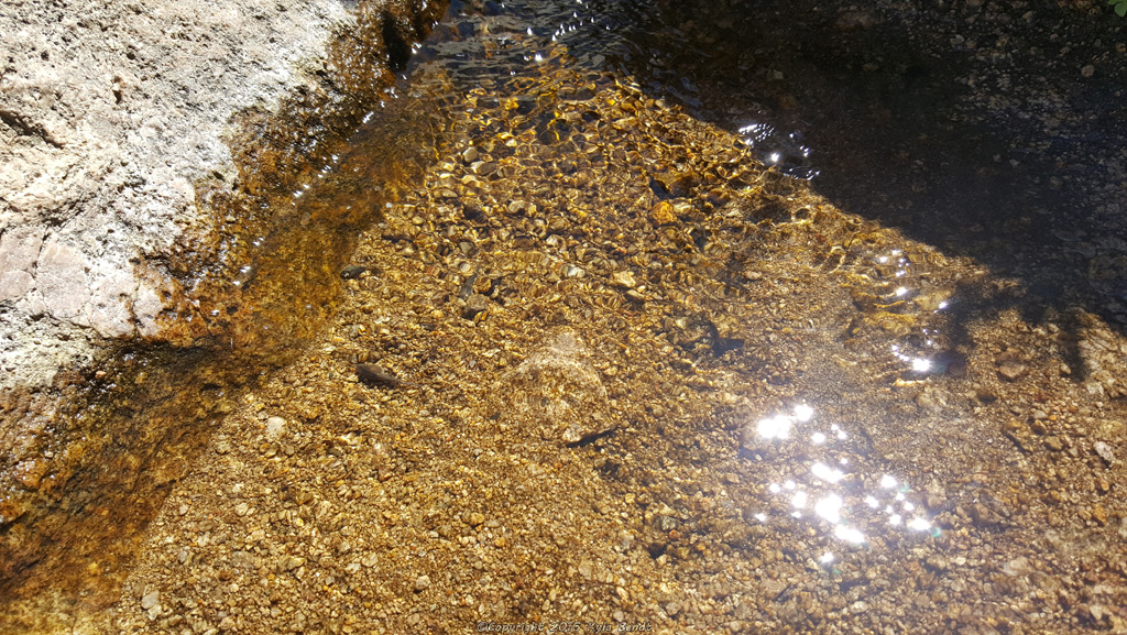 I’ve written about this before, but one of the things I love about hiking and exploring is just finding small little treasures.  Not the sort of treasure that you put in your pocket, but the sort that you watch for a few moments and maybe take a picture of.  The sort of treasure that makes you say, “Oooh!  Look!  A lizard!”  This hike definitely had it’s share of those.  Along with the tadpoles, flowers and the little creek, we also saw colorful hummingbirds flitting around from one flower to the next, a lizard that looked very camouflaged on the tree it was hanging out on and shiny gold flecks in the creek that made me sure that real treasure was around somewhere.  Trying to gold pan with my hands didn’t really pan out for me though.