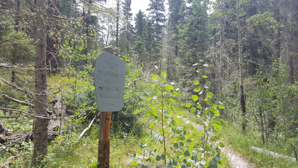 This weekend I spent 3 nights in the Pecos Wilderness. The area was absolutely gorgeous.  I spent most of my time on the Trampas Lake Trail.  It followed a mountain stream and not a smooth, tame sort of stream, but the sort with rocks and logs and some steep descents making the water seem powerful and alive and also providing a great soundtrack.  The end of the trail is at  some small alpine lakes surrounded by rocky peaks.  The undergrowth of the forest was lush and green with lots of wildflowers in bloom.  Perhaps my favorite part was lots of wild strawberry plants with the smallest strawberries on them I’ve ever seen- yet still ripe and delicious.  It was high enough up to get away from the sweltering summer heat of New Mexico which was a welcome relief.  (The trail-head is at an elevation of about 9,000 feet and the lakes are at about 11,500.)